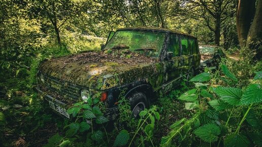 В лесах Уэльса обнаружен брошенный внедорожник Land Rover Range Rover 1987 года выпуска. Судя по наклейке о прохождении техосмотра стало известно, что последний раз этот автомобиль выезжал на дороги в 2005 году, с тех пор, вероятно, простаивает в лесу. За все эти годы, проведённые на свежем воздухе, Range Rover не изменился в лучшую сторону. Толстый слой грязи, гниющих листьев и мха тщательно скрывает оригинальный синий цвет кузова. Шины автомобиля полностью спущены, но протектор в некоторых местах еще виден...