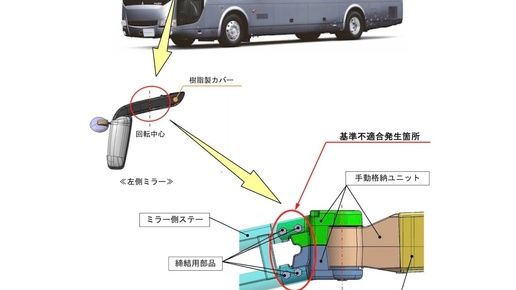 Mitsubishi Fuso отзывает автобусы из-за риска отрыва левого зеркала: выявлены трещины и аварии