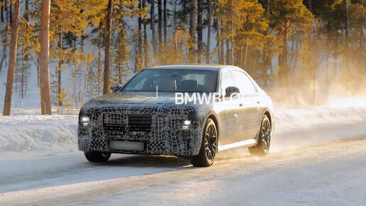 Автомобильные папарацци разжились новыми снимками BMW 7-й серии, сделанными ранее в этом месяце. Несмотря на громоздкий камуфляж, под ним всё же скрывается знакомый G70. Интересно, что седан был замечен в компании с iX3, что заставляет задуматься: не позаимствует ли 7-я серия какие-то элементы дизайна у Neue Klasse? На кузове заметны чёрные заклёпки, что указывает на двухслойную камуфляжную окраску. А вот отверстия в нижней части решётки радиатора намекают, что перед нами модификация с двигателем внутреннего сгорания...