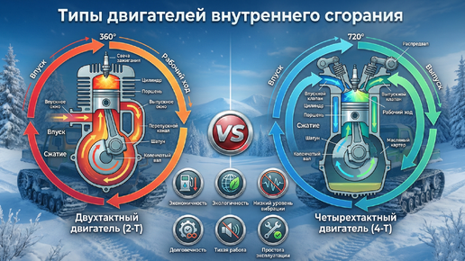 Какие двигатели лучше для мотобуксировщиков: технический обзор и рекомендации экспертов Мотобуксировщик (мотособака) — это универсальное средство передвижения по заснеженной местности, эффективность которого напрямую зависит от установленного силового агрегата. Правильный выбор двигателя определяет проходимость техники, расход топлива, надежность в экстремальных условиях и общий ресурс эксплуатации. Принципиальное различие между двумя типами ДВС заключается в протекании рабочего цикла при сгорании топливно-воздушной смеси...