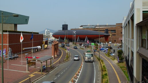 Первое, что удивило в Куре — длинный мост, по которому можно пройти от станции прямиком к музею линкора «Ямато». Вернее даже не он сам, а его интегрированность в окружающее пространство. Мост связан со всеми зданиями и перекрестками, рядом с которыми построен, с помощью лифтов и лестниц. Очень удобно, вышел из электрички и направился куда нужно. Если, например, Вы живете в высотке рядом, то спускаться вниз и идти к дверям не нужно, вход в здание возможен с эстакады.  Шагая по мосту в сторону...