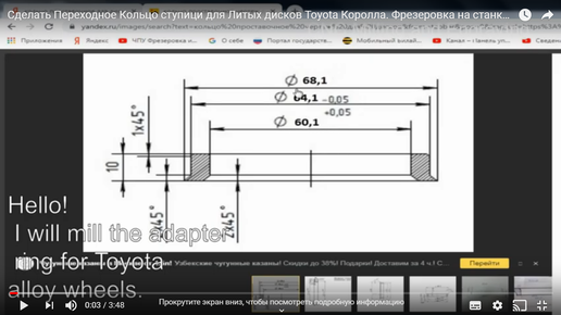 Сделать кольцо! Фрезеровка самодельного переходного кольца 68,1 мм диаметром, для литых дисков Toyota. Станок с ЧПУ, изготовление кольца из алюминия. Всех приветствую YouTube канале CNC milling and engraving (ЧПУ фрезеровка и гравировка)...