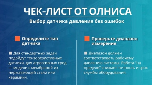 ⚙️ Чек-лист: как выбрать датчик давления без ошибок