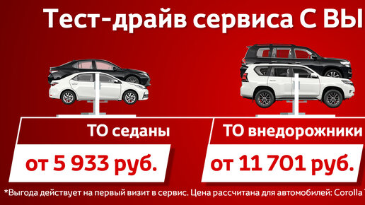 Ищете сервис Toyota? Не знаете кому доверить свой автомобиль? Приглашаем вас на тест-драйв сервиса в Тойота Измайлово и Тойота Люберцы за половину стоимости работ. Мы гарантируем вам: - Выгоду 50% на работы и 20% на запасные части - до 5% от суммы чека возвращается на Ваш личный бонусный счет в дополнение к действующим скидкам - 100% соблюдение технологий и стандартов Тойота Мотор - Профессиональных мастеров с опытом работы с Toyota более 5 лет - Квалифицированную консультацию по любым вопросам,...