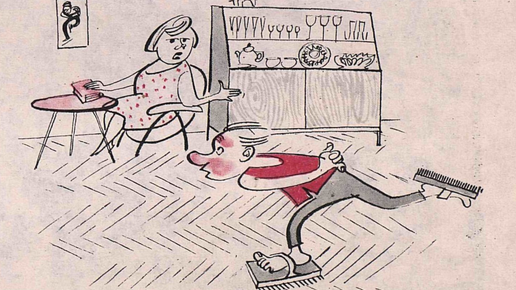 Всем салют! А вам нравится эстетика 1960х? О, я же уже спрашивала вас об этом! Ведь не так давно у нас была подборка про мебель шестидесятых. Так вот, мне нравится эта эстетика - легкость линий, воздушность. И важный предмет интерьера, который выражает это - торшеры на таких тонких высоких ножках, часто изогнутых. На рисунках в этой коллекции торшеров много, правда не на всех карикатурах они есть. И еще важная деталь - это не карикатуры про мебель. Высмеиваются в рисунках самые разные явления. Но каждый раз действие происходит в интерьере...