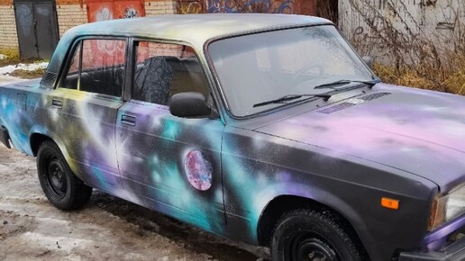 На вторичном рынке автомобилей в подмосковном Егорьевске появился экспонат, который сложно назвать просто машиной. Это, скорее, арт-объект на колесах — ВАЗ-2107 2002 года выпуска, кардинально сменивший свой облик с помощью аэрозольных баллончиков, передает REGIONS. Если раньше «Жигули» были синими, то теперь они украшены авторским «космическим» окрасом, выполненным красками для граффити. Авторы проекта из частной автомастерской признаются, что целью было не просто обновление цвета, а создание уникальной ливреи, которая выделила бы автомобиль из тысяч подобных...