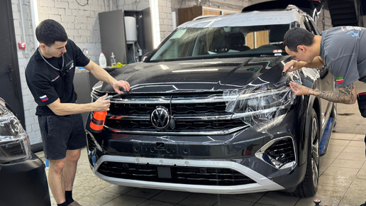 Забронировали лобовое стекло Volkswagen Talagon и самые уязвимые элементы кузова прозрачной полиуретановой плёнкой