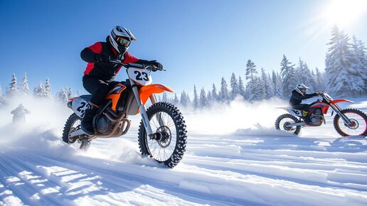 Заезд на питбайках по снегу на шипах