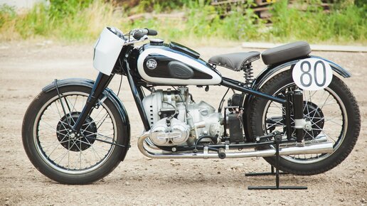 ГМЗ в Горьком был образован в начале Великой Отечественной, путем слияния эвакуированных Харьковского, Ленинградского, и Тульского мотозаводов. В 1946 году на заводе под руководством главного конструктора Н. Гудкина был создан первый гоночный мотоцикл, получивший индекс М - 80. Выпустили таких мотоциклов пять штук, однако эта страница нашей гоночной истории достойна упоминания. По всей видимости, единственный сохранившийся до наших дней М - 80 находится в Самаре у В. Шеянова. Основные детали ,такие ,как рама, передняя вилка, были взяты от серийного М - 72, ходовая часть облегчена...