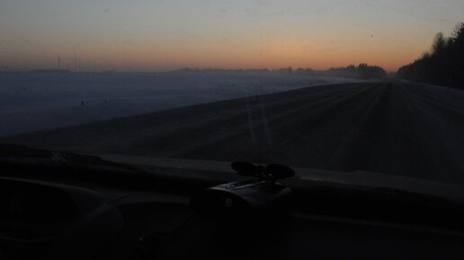 Как только отъехали от Архангельска, сразу появилось ощущение, что наконец-то мы завершаем путешествие и едем домой. Под колёсами был чистый асфальт федеральной трассы М-8 "Холмогоры". Дорожное покрытие на ней будет похуже, чем на трассе Р-21 "Кола" - а вот от снега она была почищена так же хорошо. В этом плюс федеральных трасс: их всегда чистят до асфальта, в отличие от дорог регионального значения. Педали и рулевое управление на скорости 100 км/ч в 40-градусный мороз сразу же замёрзли, но мы не унывали...