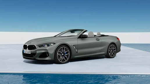 2023 BMW M850i кабриолет в цвете Frozen Pure Grey с голубой крышей
