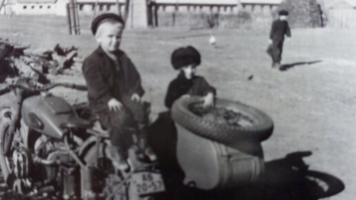 Маленький мальчик на большом мотоцикле «Ирбит»