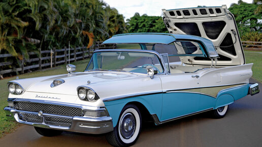 Купе или кабриолет? Еще до конца 1950-х этот невероятно сложный выбор стоял перед многими молодыми американцами, решившими приобрести себе персональный автомобиль. Купе практичнее, а кабриолет романтичнее. Однако в 1957 году фирма Форд разрешила этот сложный вопрос, предложив Ford Fairlane 500 Skyliner — первый в мире автомобиль со складной жесткой крышей. На самом деле системы складывания жесткого верха, американские автопроизводители разрабатывали еще во время войны. Но дальше экспериментальных прототипов дело не пошло...