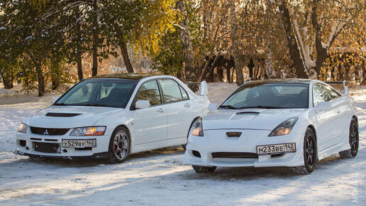 Эти ослепительно-белые автомобили с чёрными крышами стали появляться на дорогах Кемерова совсем недавно. Celica радует взгляды горожан всего только пару месяцев. Evolution вообще выехал из гаража лишь несколько недель назад. У этих машин очень много общего: обе они были заветной мечтой своих хозяев, которая смогла воплотиться в реальность. Прошёл не один год прежде чем они стали такими, как сейчас. Они оформлены в едином стиле. А ещё, именно благодаря им их владельцы теперь вместе. Но всё-таки они разные...