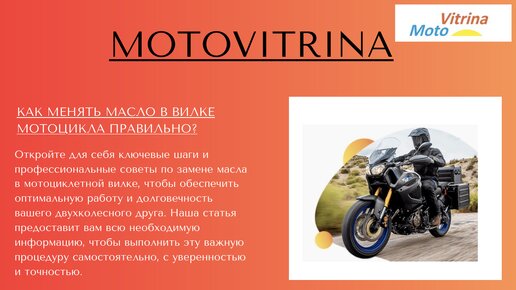 Процесс обновления масла в мотоциклетной вилке может казаться сложным не только для начинающих байкеров, но и для бывалых мотоциклистов. Зачастую даже опытные механики уделяют этой задаче значительное количество времени, так как приходится учитывать множество тонкостей. Важно также верно выбрать тип масла, чтобы достичь оптимальной жесткости подвески. Подход к этой операции должен быть осознанным и основываться на глубоких знаниях и подготовке. Производители мототехники рекомендуют осуществлять обновление масла в передней подвеске после накатывания 12–15 тысяч километров...