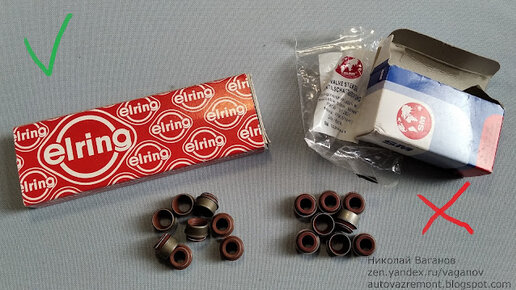 Поддельные маслосъемные колпачки Elring Ø8 мм (арт. 702.706). Сравнение с оригиналом