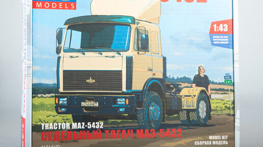 Сборная модель МАЗ 5432 от производителя AVD models. Двухосный сидельный тягач представленный с поздней кабиной. У сборной модели открывается кабина под которой скрывается двигатель. Сборная модель очень детализирована. В сборную модель от AVD не входят акриловые краски. Этот МАЗ прозвали супермазом потому что все кто ездил на этом грузовике чувствовали себя очень комфортно...