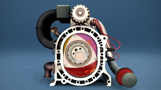 Знакомьтесь, это роторно-поршневой двигатель в разрезе, с ротором, изготовленным в форме...