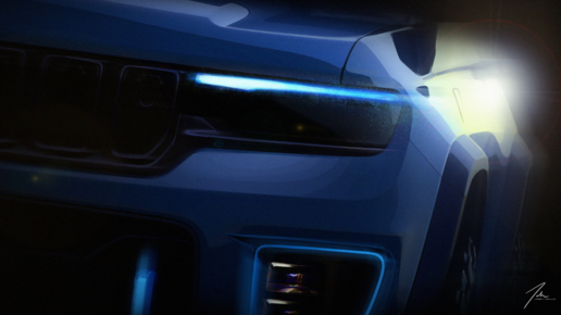 Jeep и JPP работают над концептами автомобилей, которые "выводят SUV с полным приводом на следующий уровень". Два из них покажут в апреле на Пасхальном Сафари Jeep в штате Юта. Тизер №1 представляет собой 4xe, который "преодолевает бездорожье и представляет видение свободы Jeep без выбросов". Элементы гриля напоминают Grand Cherokee L с защитой крыльев и синими бликами...