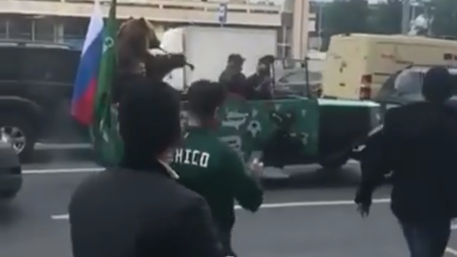 Реакция иностранных болельщиков на медведя с дудкой! Видео!