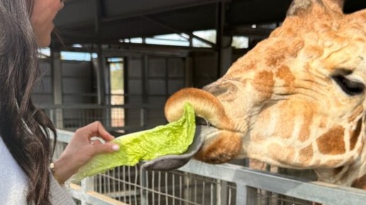 Пресса США и Великобритании сообщает новость: Меган кормила огромными зелеными листьями салата жирафа в зоопарке и садах Ливинг Дезерт в Па
