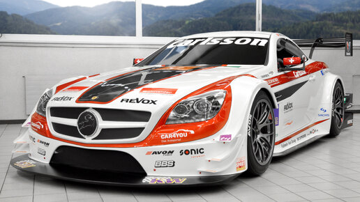Горячая гонка на автомобиле Мерседес по треку. Компьютерная игра.