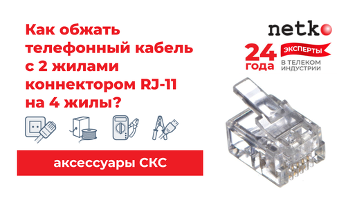 В обычной телефонии используются только две жилы кабеля. Допустим, у вас есть телефонный кабель 2с, на который нужно установить коннектор. Но под рукой только джек на 4 жилы. Подойдёт ли такой коннектор для двужильного кабеля и что делать с «лишними» контактами джека? Сейчас разберёмся. Да, можно, несмотря на то, что количество контактов в коннекторе больше, чем жил в кабеле. Ниже мы покажем, как это сделать. Возьмём телефонный кабель 2с: А также коннектор RJ-11: Дополнительно нам понадобится обжимной инструмент...