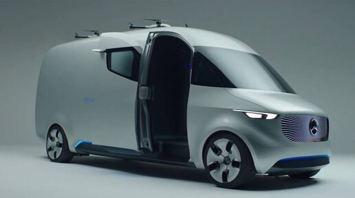 Не так давно Mercedes показал всему миру свой концепт-кар –микроавтобус Vision Van Concept. Не сложно догадаться, что в движение этот футуристичный фургон приводит электротяга. Представлен он был как городской перевозчик малогабаритных онлайн-покупок с парочкой дронов на крыше, для доставки до двери. Емкости аккумуляторов хватает на 270 километров пути, что в принципе не так уж и мало, учитывая что всю "грязную" работу буду выполнять дроны. Управлять этим микроавтобусом будущего нужно при помощи джойстика, установленного в подлокотнике...
