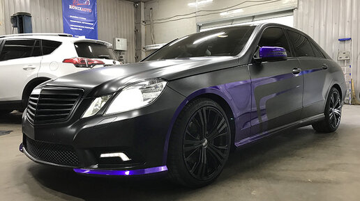 Полная оклейка Mercedes-Benz E класс в черный мат + наклейки