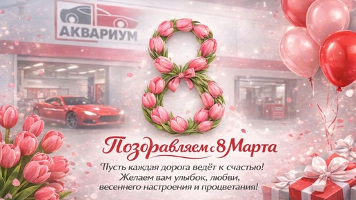 Автоцентр "Аквариум" сердечно поздравляет всех женщин с Международным женским днем — 8 марта