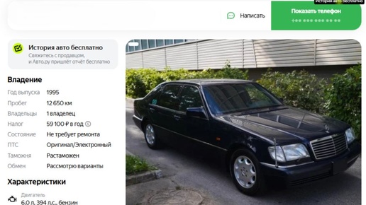 Легендарный "шестисотый" Mercedes без пробега выставили на продажу в России