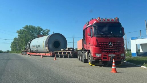 Монструозный тягач «Мерседес» с негабаритным китайским грузом на месяц «застрял» в Саранске Еще в середине мая Денис Тюркин, выезжая из Ялги в Рузаевку, заприметил возле бывшего поста ГАИ припаркованный интересный негабарит: четырехосный тягач «Мерседес» и аж десятиосный прицеп, на котором покоилась гигантских размеров цилиндрическая штуковина. Оказалось, дальнобойщик и несколько машин сопровождения застряли на въезде в наш город (ждут разрешительных документов) еще в майские праздники! Правильнее даже сказать, что их задержали транспортники: на передние колеса тягача надеты блокираторы...