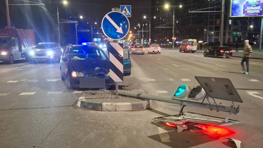 ДТП на минском перекрестке. Момент столкновения Mitsubishi со светофором попал на видео