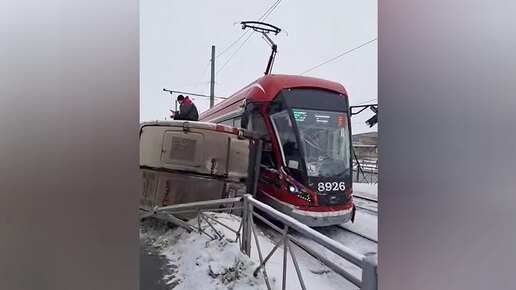 В Петербурге на Корабельной трамвай снес микроавтобус Mercedes
