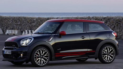 Внешность Мини Пэйсмен Джон Купер Воркс взывает к эмоциональности и драйву посредством черно-красного раскраса кузова.