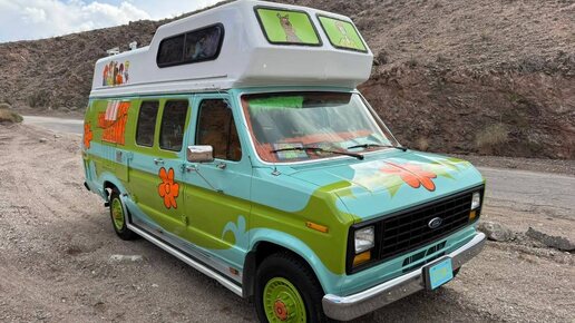 🔥SCOOBY-DOO🔥 Этот Ford E-250 1988 года представляет собой кемпер класса B от Coachmen, который в 2024 году был перекрашен в стиле фургона The Mystery Machine из мультсериала Scooby-Doo и оформлен с использованием пушистой обивки и тематического декора. Автомобиль оснащён 5,8-литровым V8 Windsor (351 ci), работающим в паре с трёхступенчатой автоматической коробкой передач. Оснащение включает спальное место под потолком, диван, туалет, умывальник и мини-кухню с раковиной, микроволновой печью, холодильником и двухконфорочной плитой...