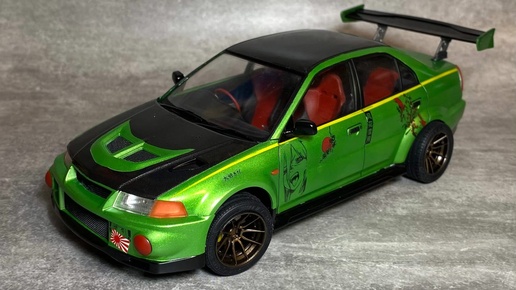 Mitsubishi Lancer VI, Tamiya, 1/24 Из дополнений: декали (слайдеры для манюкира со всеми известной торговой площадки), 3д печать (спойлер, банка глушителя, цурикава, диски), номер от Emboss/Embase. К сожалению, решил использовать единственные имеющиеся у меня цветные лаки - от Джим Скейл 7 серии...