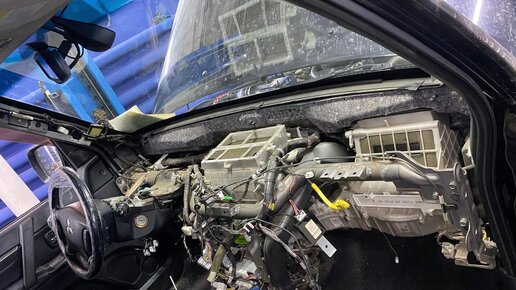 MITSUBISHI PAJERO черный 2011г.в 330800км Причина обращения клиента не идет горячий воздух слевой стороны отопителя на нагретом автомобиле В ходе диагностики выявлено что забит радиатор отопителя. Замена радиатора производится с разбором панели приборов и торпеды салона...