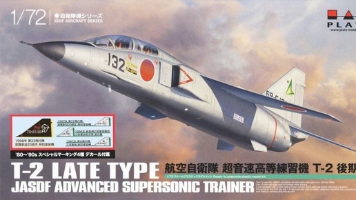 Platz из Японии переиздает с новой декалью свою модель разработки 2014 года Mitsubishi T-2 в масштабе 1/72: JASDF Advanced Supersonic Trainer T-2 Late Type with '80-'90s Special Marking Decals (каталожный...