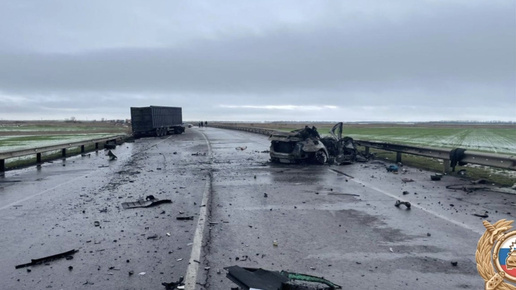 В четверг на 74-м километре автодороги Азов—Староминская в Ростовской области произошло смертельное ДТП, сообщили в региональной Госавтоинспекции. По данным ГАИ, 35-летний водитель "БМВ" выехал на встречку и столкнулся с автомобилем "Ивеко" в составе автопоезда с полуприцепом "Тонар". Фурой управлял мужчина 1977 года рождения. Уточняется, что после столкновения "БМВ" загорелся, а "Ивеко" по инерции продолжил движение и протаранил барьерное ограждение...