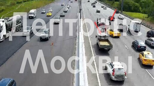 Мотоцикл и автомобиль столкнулись на 87-м км МКАД в Москве
