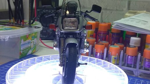 Всем привет✋👋 Сегодня расскажу вам про мотоцикл в маштабе 1/12 от фирмы Тамия. Это первый и единственный мотоцикл который я собрал, да и ещё покраска исключительно кистью. На литниках много хромированных деталей, которые по факту и красить не нужно, только клей аккуратно. Что собственно я и сделал 😁 Ну и с этой модели у меня начался новый этап стройки, теперь я крашу либо отдельно каждую деталь, либо отдельно группу деталей составляющий один узел. Если честно то я до сих пор смотрю на фото готовой модели и нахожусь под впечатлением, хотя прошло уже пару лет...