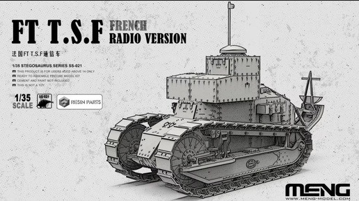 Meng Model из Китая выпустит новый вариант своей модели разработки 2013 года Renault FT в масштабе 1/35: FT T.S.F. French Radio Version (каталожный номер SS-021)