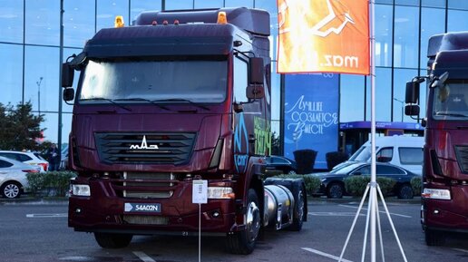ОАО «Минский автомобильный завод» (МАЗ) передал тягач МАЗ-54А02N на сжиженном природном газе (СПГ) российской компании «Газпром гелий сервис» (дочернее предприятие ПАО «Газпром») для опытной эксплуатации. Церемония состоялась на полях Петербургского международного газового форума. Тягач оснащён криогенными СПГ-баками общей ёмкостью 930 л. В них можно хранить топливо без дренажа в течение 7 суток. Применение СПГ-ёмкостей позволяет увеличить нагрузку на седельно-сцепное устройство до 10 т...