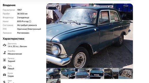 "Российская газета" обнаружила в продаже в Ульяновске интересный экземпляр - "Москвич-408" 1967 года выпуска с пробегом 36 тысяч километров. Уникальности машине добавляет не только не очень большой пробег для 58-летнего возраста, но и то, что это один из самых ранних образцов данной модели, доступный к покупке в РФ и не подвергавшийся реставрации. Внешнее состояние машины нельзя назвать идеальным, имеются сколы, царапины, а краска выгорела на солнце. Тем не менее кузов сохранился в родном темно-синем цвете "антрацит"...
