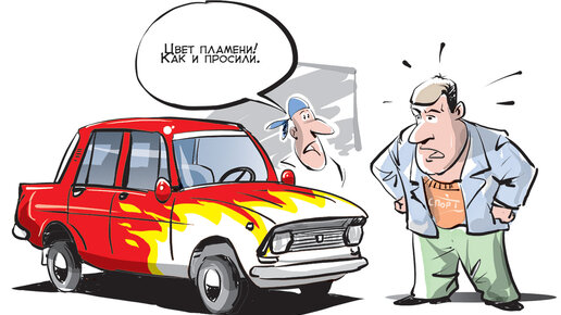 Один сотрудник нашего отдела в застойные годы ездил на «Москвиче-412» цвета «пламя». Кто не знает, это смесь оранжевого и красного цвета. И никакого другого. И вот решил он освежить машину. Приехал в автомастерскую. Попросил покрасить в цвет «пламя». Начальник мастерской пообещал все сделать в лучшем виде. Спустя какое-то время наш герой посещает мастерскую… и не видит своего «Москвича».
