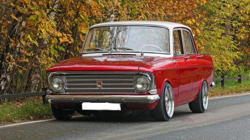 Сегодняшняя статья будет о том, как несколько умельцев превратили автомобиль Москвич-412 в самый настоящий шедевр, которому позавидуют не только простые автолюбители, но и ценители автомобилей класса люкс. И так, собрались ребята и подумали-почему бы не сделать из старого Москвича 1972 года выпуска нечто необычное, что можно будет продать подороже. Покрасив кузов в малиновый цвет, крышу в белый, встал вопрос о колёсах. Нашли шестнадцати дюймовые спицевые диски и установили на них самую низкую резину, которую удалось найти иначе бы колеса упёрлись бы в арки...