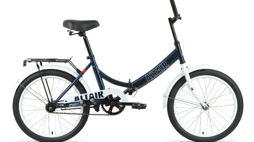 Складной прогулочный велосипед без переключения передач. Технические особенности: стальная рама Hi-ten, жесткая стальная вилка, двойные обода Altair, ножные педальные тормоза, длинные крылья, багажник, комфортное седло, звонок, подножка, защита цепи...