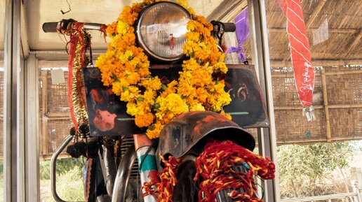 Все знают, что в Индии несчитанное количество Богов, и нет разницы, кому из них поклоняться. Порой индийцы доходят до крайности, обожествляя современные повседневные вещи, так на западе Индии очень популярен храм, где поклоняются мотоциклу, а заодно и его погибшему водителю. Мы не знали, что такой феномен существует в Индии, пока не увидели это своими глазами, во время путешествия по штату Раджастан. Совершенно неожиданно водитель нашего туристического автомобиля затормозил в людном месте, на обочине...