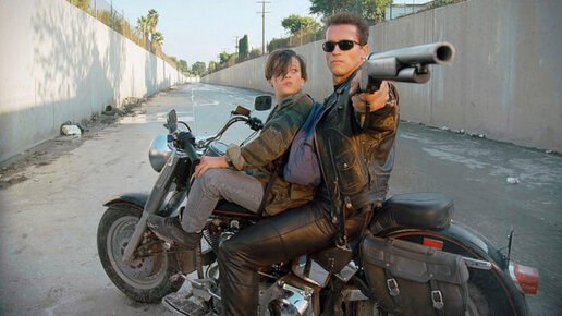 Все помнят коронное "Мне нужны твоя одежда,сапоги и мотоцикл". Какой же мотоцикл оседлал Терминатор? А это Harley-Davidson модели FLSTF Fat Boy .Снаряженная масса 330 кг,двигатель двухцилиндровый объемом 1800 куб.см.,мощность 57 лошадиных сил,максимальная скорость 150 км/час. Замечали,когда Терминатор прыгает на Харлее в канал с дороги,подвеска отрабатывает очень мягко - такова особенность его амортизаторов,они очень мягкие,ведь это дорожный байк,а не кросач. Мотоцикл,получивший бешеную популярность во всем мире после фильма,а до того бывший популярным у байкеров...